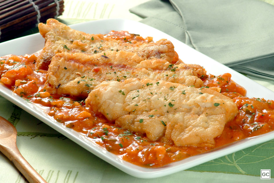 Tempere os peixes com limão e sal e grelhe-os em uma frigideira com um fio de azeite. Reserve. Na mesma frigideira, doure o alho, refogue os camarões rapidamente (2 minutos) e adicione o molho de tomate. Deixe levantar fervura, ajuste o sal e despeje sobre os filés. Finalize com coentro ou salsinha.