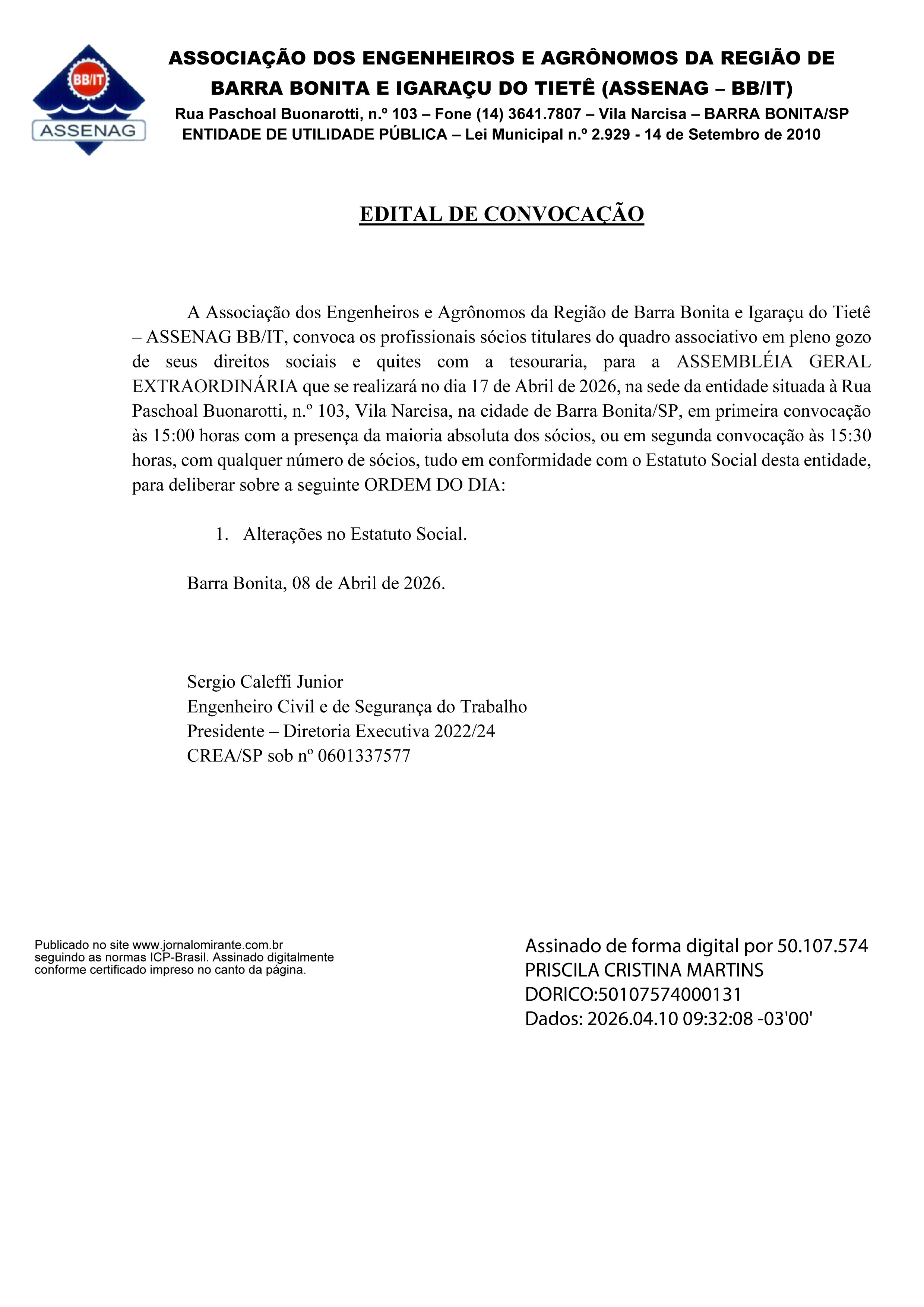 ASSENAG - EDITAL DE CONVOCAÇÃO
