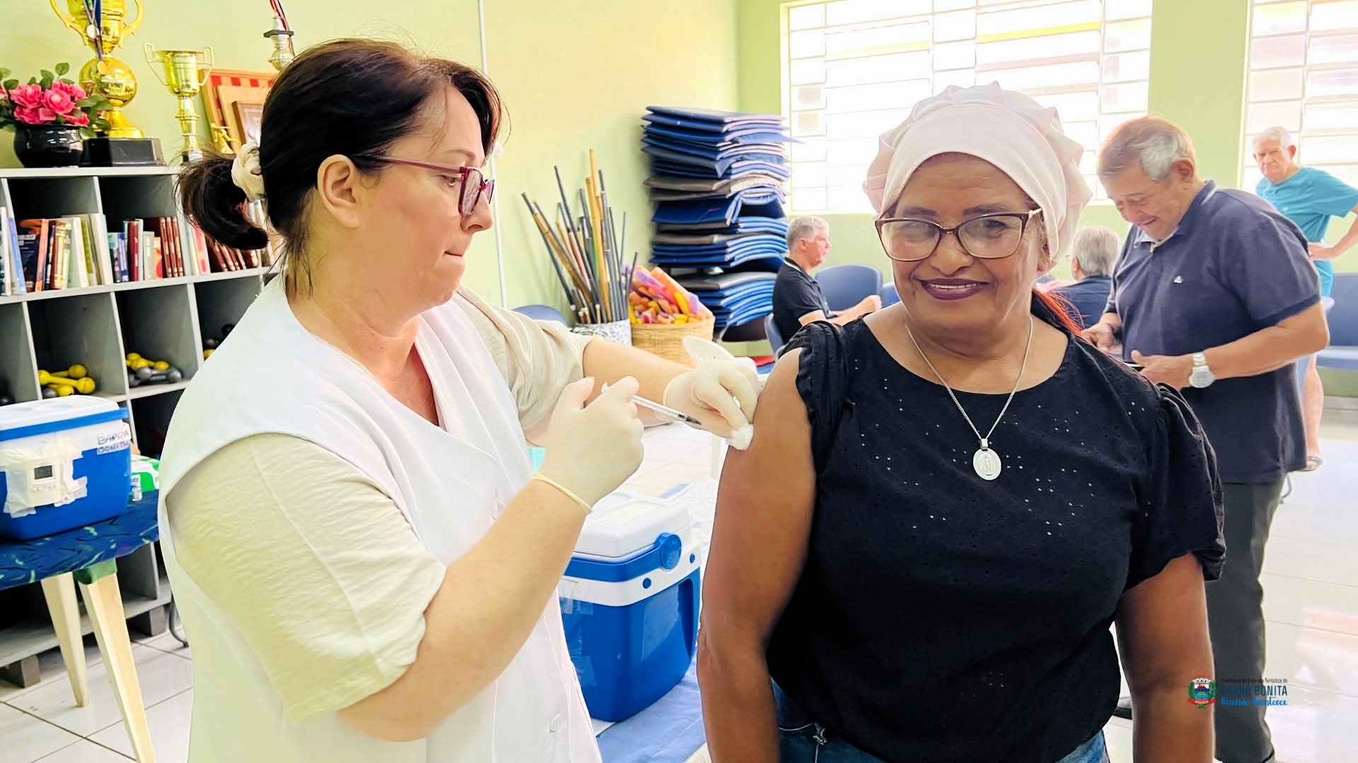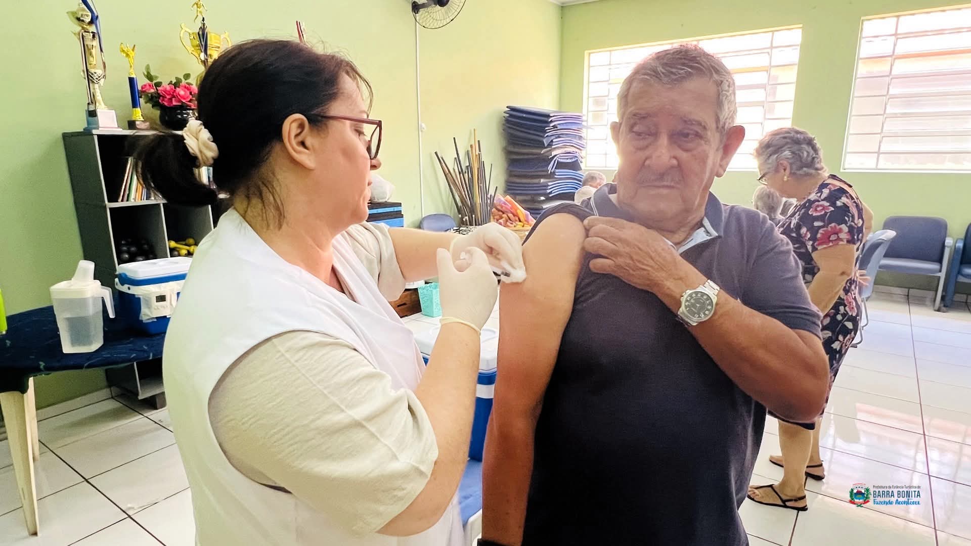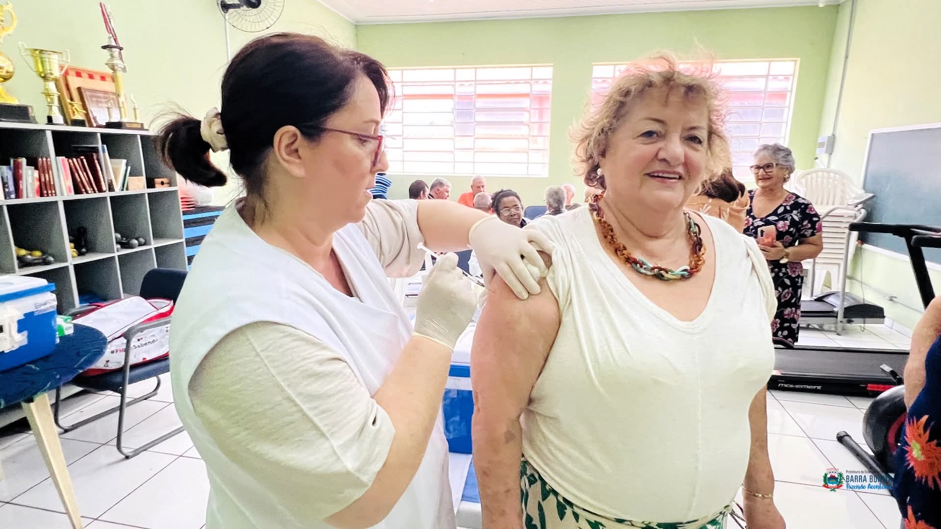 Idosos recebem dose da vacina contra a gripe durante ação especial realizada em Barra Bonita.