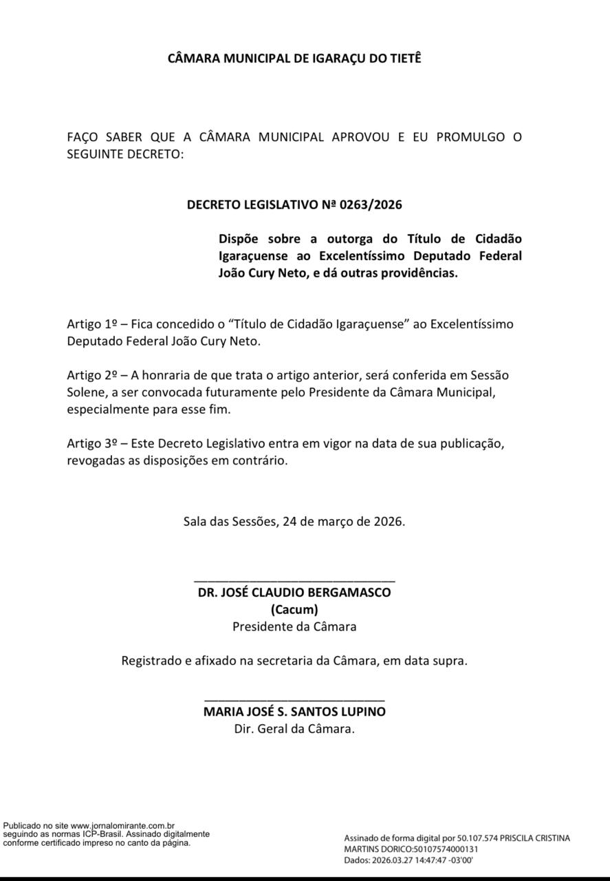 CÂMARA MUNICIPAL DE IGARAÇU DO TIETÊ - DECRETO Nº 0263