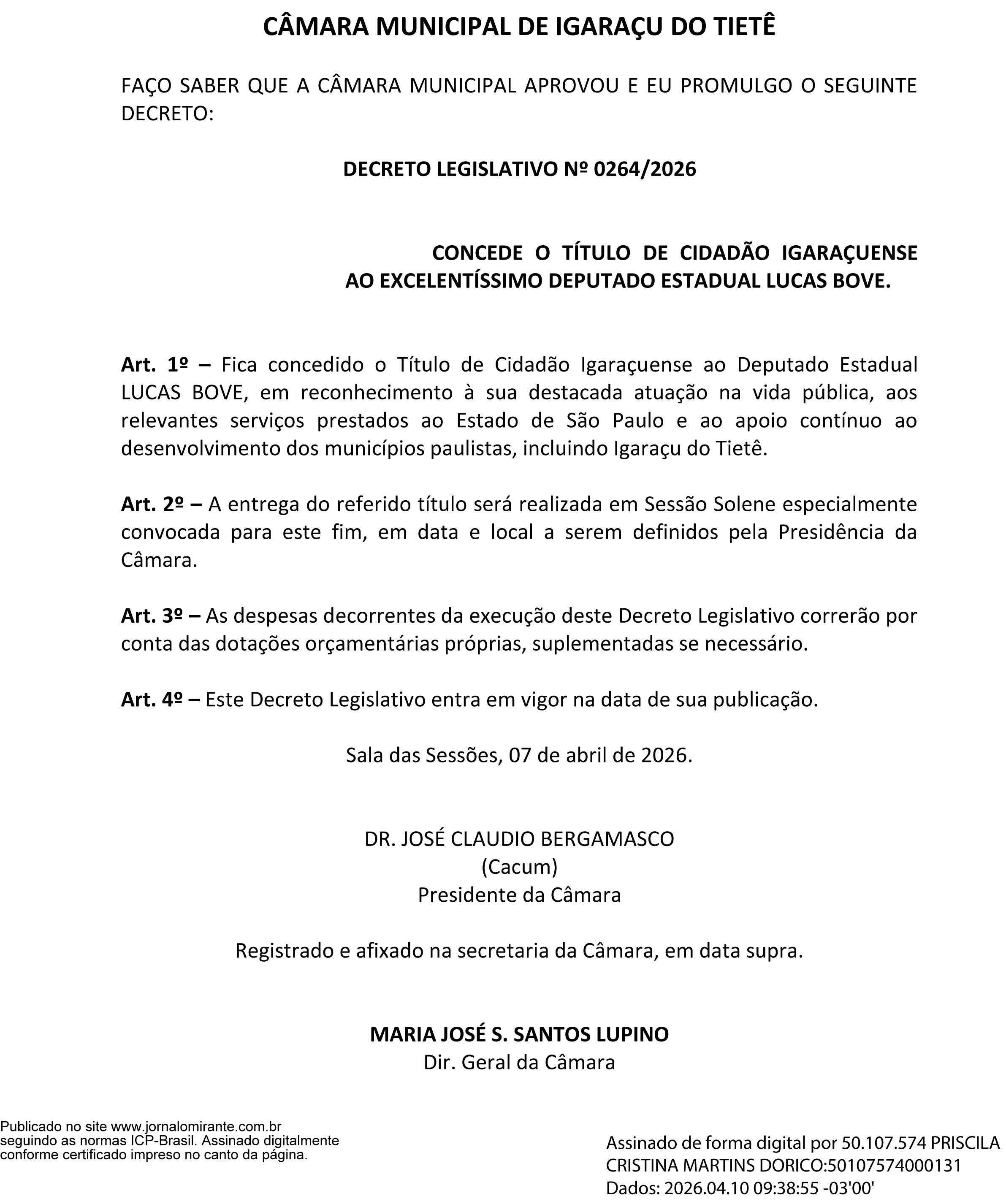 CÂMARA MUNICIPAL DE IGARAÇU DO TIETÊ - DECRETO Nº 0264