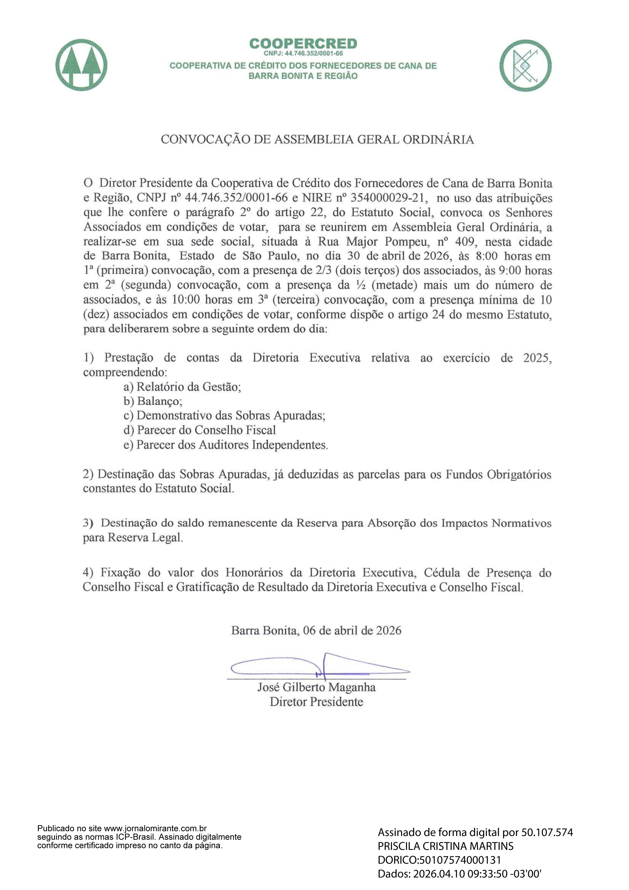 COOPERCRED - EDITAL DE CONVOCAÇÃO