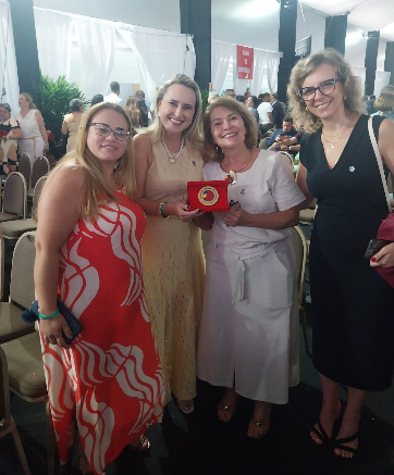 Secretária Dida Capelazzo e articuladora Raquel Mantovanini exibem o troféu Selo Ouro conquistado em Brasília