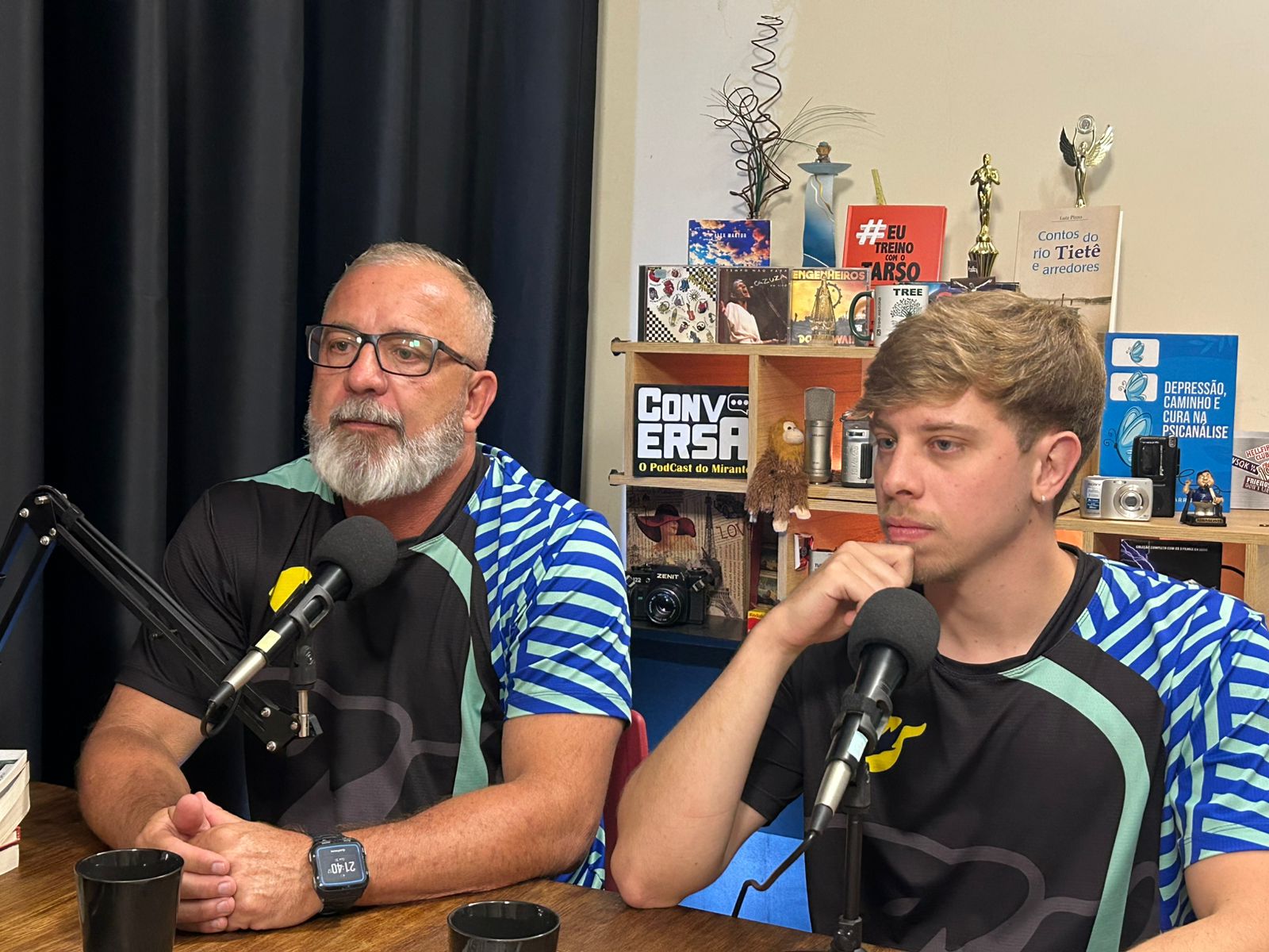O episódio 202 do podcast Conversa recebu pai e filho para um bate-papo sobre saúde, esporte, academias e natação. Jorge Sancassano Dias, o Gralha, e Gabriel Sancassani Dias estiveram no estúdio do Jornal O Mirante para um bate papo com o jornalista Netto Dorico. Aliás, o apresentador foi aluno de natação da Podium Academia, empresa da família de Gralha - ele treinava com a equipe de triatlo.