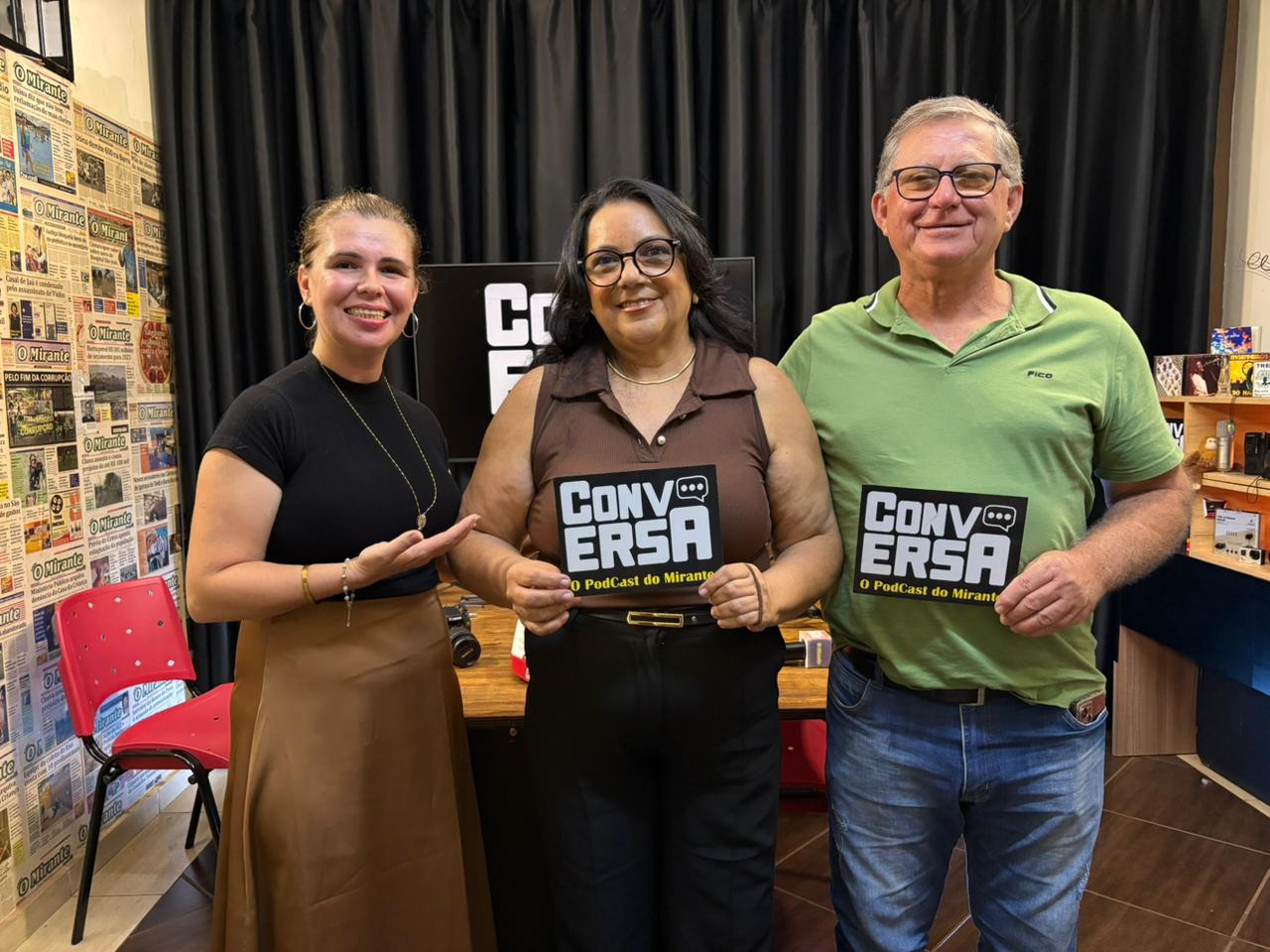 Cleide e Cláudio Nono na mesa do Podcast Conversa