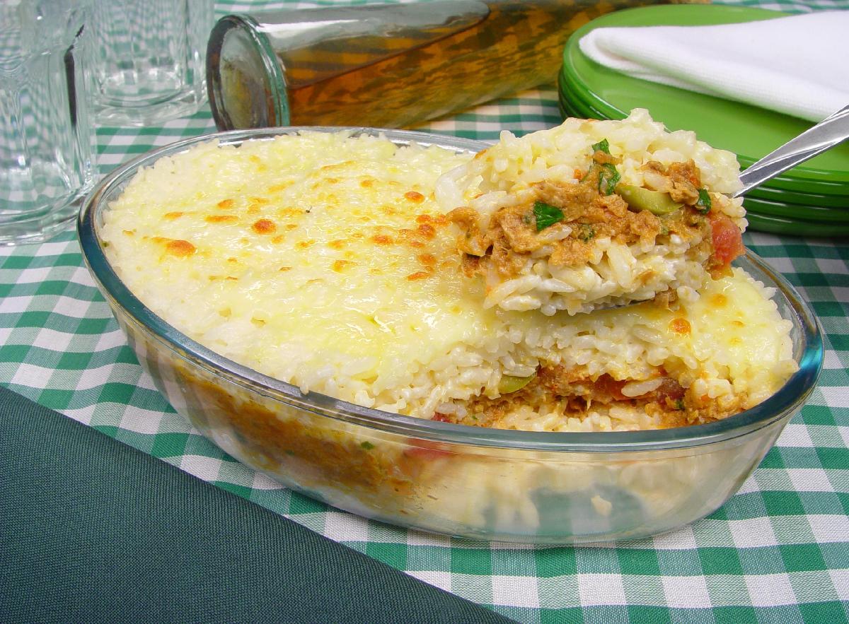 Em uma tigela, misture o arroz, o atum (sem o óleo/água), os legumes e o requeijão. Transfira para um refratário, cubra com a muçarela e leve ao forno apenas para gratinar o queijo.